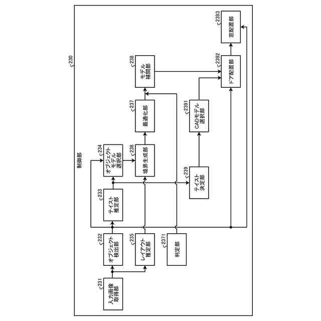 前記所定の画像に基づいて、前記境界部における窓の有無を判定し、窓が無いと判定された場合に、補間して生成された前記壁のうち、窓の配置が可能な壁に対して、窓を配置する窓配置部と、をさらに備え、