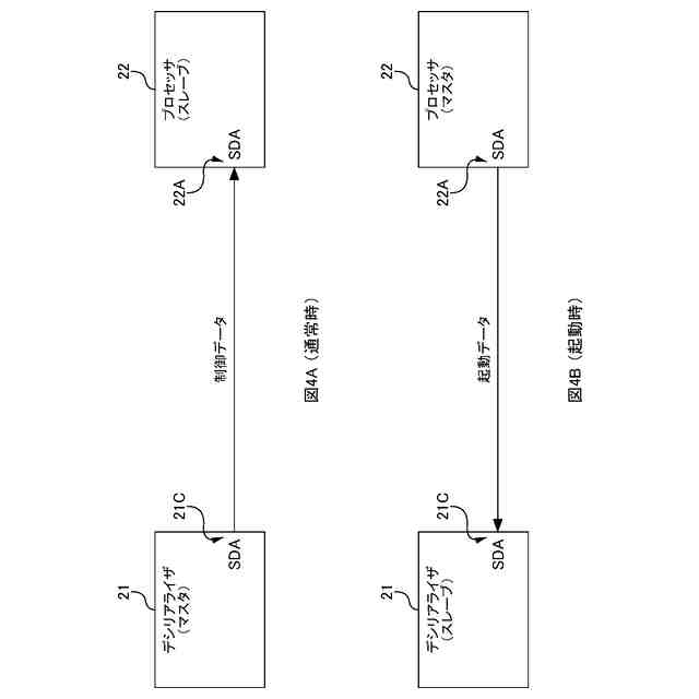 図4A及び図4Bは、デシリアライザ21とプロセッサ22との間で行われるI2C通信におけるデータの送信方向の説明図である。