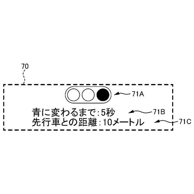特許文献1記載の表示方法では、前方の車両がカメラによって信号の色を認識し、車車間通信により信号の色情報が後続の車両に送信され、前方の車両から受信した信号の色の情報に基づいて、HUDに信号機の画像が表示される。但し、この方法では、前方の車両が信号の色を誤認識した場合に、誤った色の信号機の画像が表示されるおそれがある。