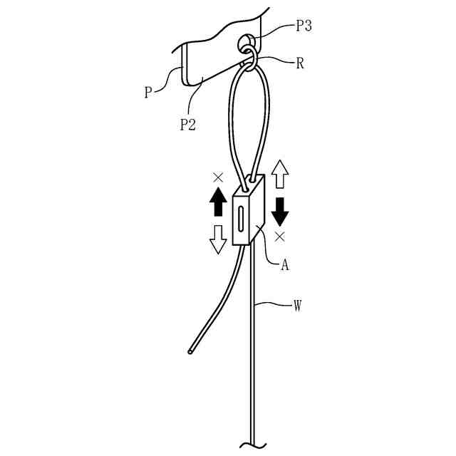 本発明の吊下作業方法において、前記第四の工程では、前記索状の吊具の軸方向に関する動作を一方向にのみ許容する動作制限機能を備えた部材により、前記対象物が自重によって降下しようとする動きを制限するようにしてもよい。