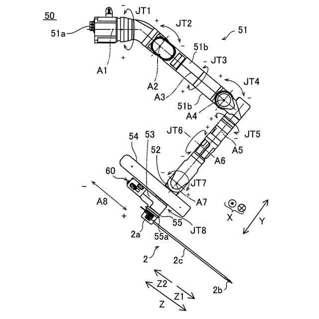 上記特許文献1には、操作者側装置と、複数のロボットアームを含む患者側装置と、制御装置と、手術用器具とを備えるロボットシステム(手術支援ロボット)が開示されている。手術用器具は、ロボットアームに取り付けられ、手術を行うように構成されている。また、手術中に手術用器具を交換する方法が開示されている。ロボットアームには、直動動作機構が設けられている。交換後のインストゥルメントが交換前のインストゥルメントと同じ位置に移動するように、制御装置により直動動作機構が制御される。