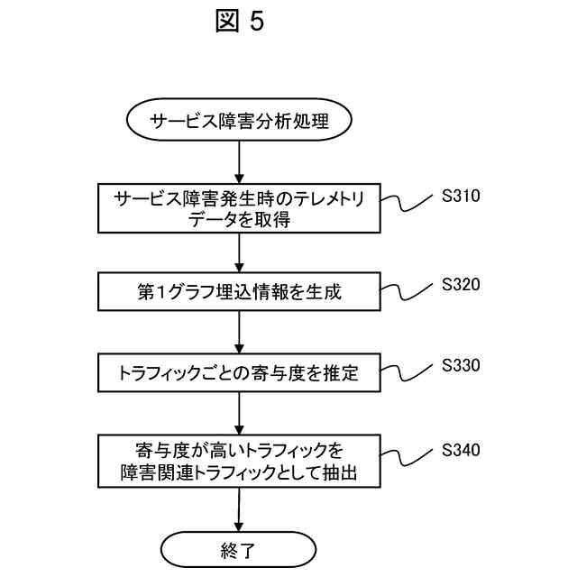 過去に前記障害が発生したときの前記テレメトリデータと前記第1のグラフとの関係をモデル化したサービス障害モデルを格納する記録装置を備え、