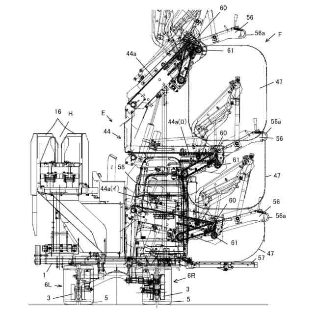 請求項1記載の発明によれば、オフセットしたS1-Qラインに沿って機体が自動後進するので、収穫作業時に機体側方に放出した排葉物や不良作物を踏みつけて後進してしまうことが回避でき、収穫作業時に機体側方に放出した排葉物や不良作物が後進の障害となることもなく、また、畝を踏み潰して次の収穫作業条の畝に土を寄せてしまって、次の収穫作業条での収穫作業時に収穫作業の障害となることを防止することができる。