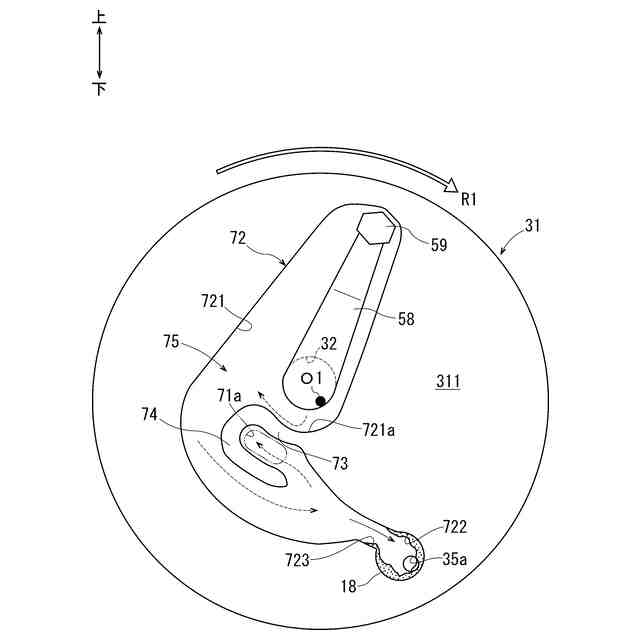 従動スクロールはハウジング内に収容されている。より具体的には、従動スクロールは駆動スクロール内に収容されることにより、ハウジング内に収容されている。そして、従動スクロールは駆動スクロール内に収容されることで、駆動スクロールとの間に圧縮室を形成している。また、従動スクロールには、ボスに向かって突出する従動軸が形成されている。従動軸は支持孔に挿通されている。これにより、従動スクロールは、駆動スクロール内に収容された状態でボスに従動軸心周りで回転可能に支持されている。また、従動軸の内部には吐出室が形成されている。吐出室は圧縮室と連通している他、吐出連絡口と連通している。つまり、吐出室を通じて圧縮室と吐出連絡口とが連通している。従動機構は駆動スクロールと従動スクロールとの間に配置されている。