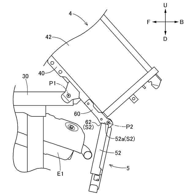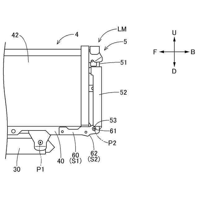 第2ストッパの具体的な構成として、前記ゲートブラケットに形成された被接当面に前記テイルゲートの下端部が接当することにより前記テイルゲートが前記第2姿勢に維持されることが提案される。この構成では、ゲートブラケットの一部に、例えば、機械加工等で被接当面を形成すれば、テイルゲートは正確な揺動角度で保持される。所望の揺動角度でテイルゲートを保持するためには、被接当面の加工角度を相応の角度になるように加工すればよい。