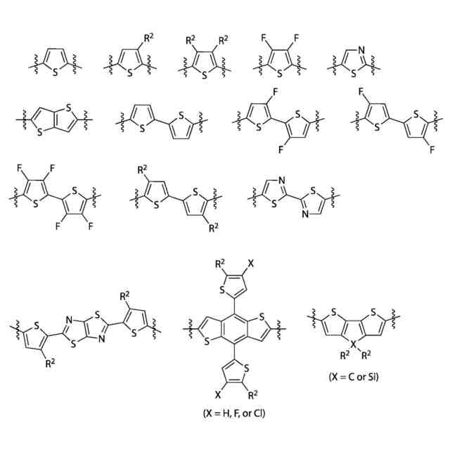 )を高めることができる電子供与性有機材料が望まれる。開放電圧を高めるためには、電子供与性有機材料は深いHOMO(Highest Occupied Molecular Orbital、最高被占有分子軌道)準位を有することが必要になる。このような深いHOMO準位を有する電子供与性有機材料として、例えば、窒素原子や硫黄原子をπ共役系に組み込んで縮環させたベンゾビスチアゾール骨格を有する共役重合体が知られている(特許文献1)。
