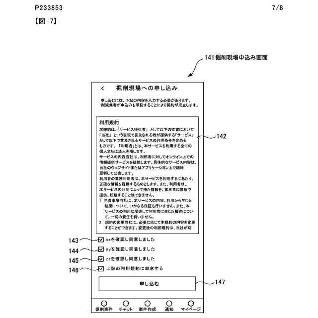好適には、前記掘削案件が地図上に前記掘削の場所ごとに表示され、かつ前記掘削案件の表示に操作を加えると、前記掘削案件の詳細が表示される。