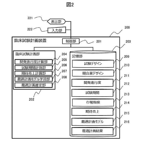 前記最適化を、前記第1の薬剤の臨床試験の期間と前記第1の薬剤の期待売上の両方を用いた数式に基づき評価する最適計画推定部を備える、