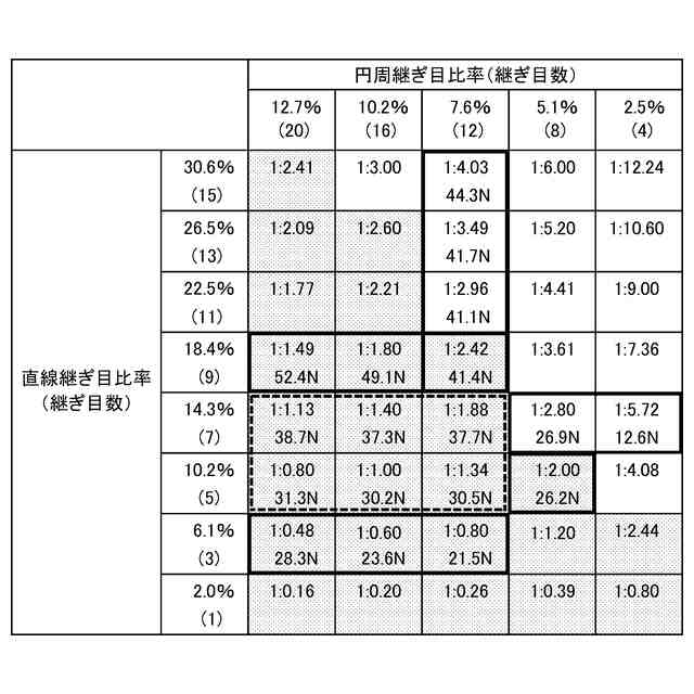 円周継ぎ目比率:直線継ぎ目比率=1:2.6以下