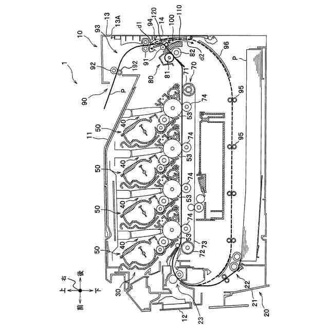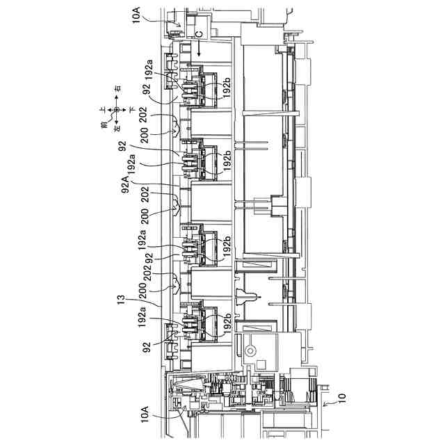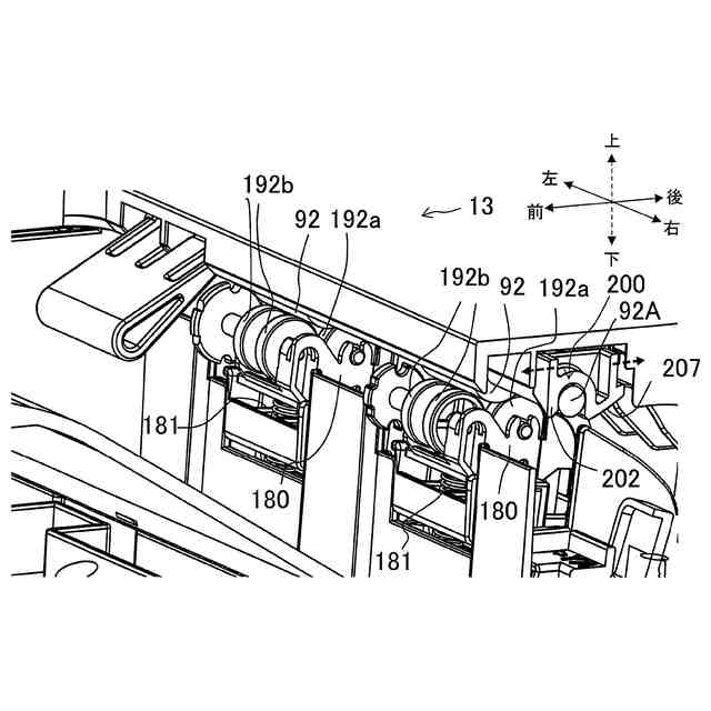 本願発明においては、軸保持部材が、隣接する2つの第1ローラの間に配置される。これにより、隣り合う第1ローラどうしの間で外装カバーとローラ軸との間隔を保持することができる。