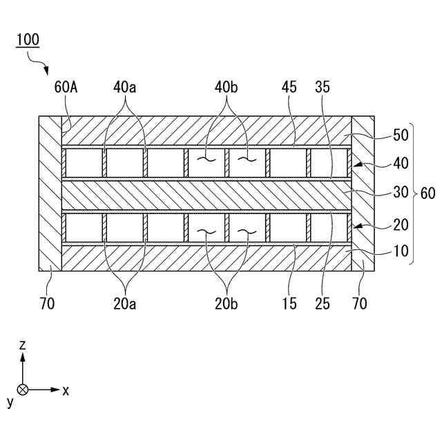 前記積層体の側面に配置して前記積層体の側面を封止する封止材料からなる外枠と、を備え、