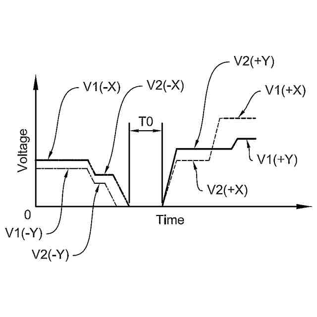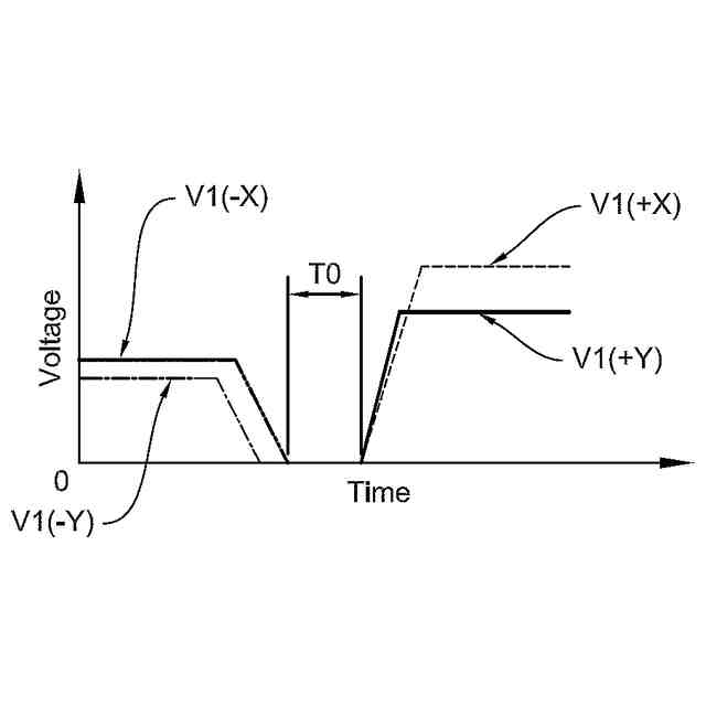 本出願人及び本発明者の検証に依ると、MEMSミラーの揺動軸をX軸及びY軸共に+(プラス)方向のみの+X軸と+Y軸の二方向に限定しても、例えば図16に示す様にMEMS光スイッチの光出射ポート数100が15ポート以内であれば、図17に示す様に簡易なステップ電圧制御での揺動が可能である事が確認された。図16では、1つのポートは光入射ポートであり、残りの15ポートが光出射ポートである。図17内の、実線がMEMSミラーのX軸制御電圧(X電圧)V(+X)(V)、破線がMEMSミラーのY軸制御電圧(Y電圧)V(+Y)(V)である。更に、制御用の電圧パラメータ数が膨大とならない事も確認された。