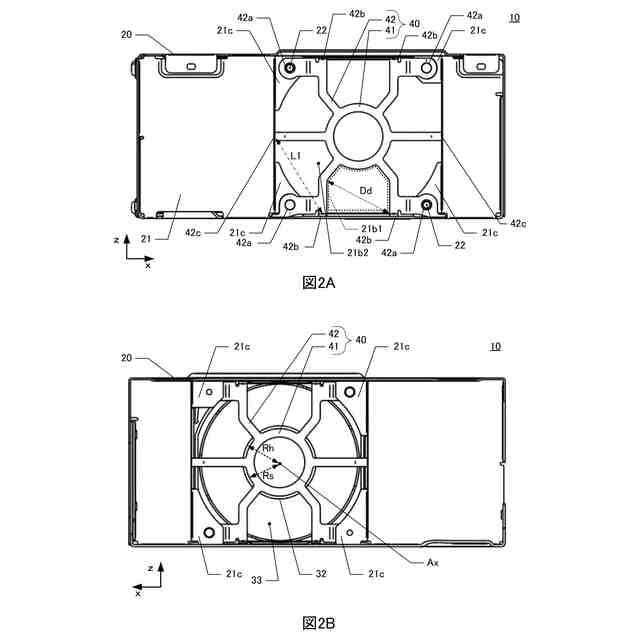 図2Aは図1Bに示す面を、ファンが取り外された状態において示した側面図である。図2Bは図1Bに示す面を、裏側から(筐体の内側から)見た状態の図である。