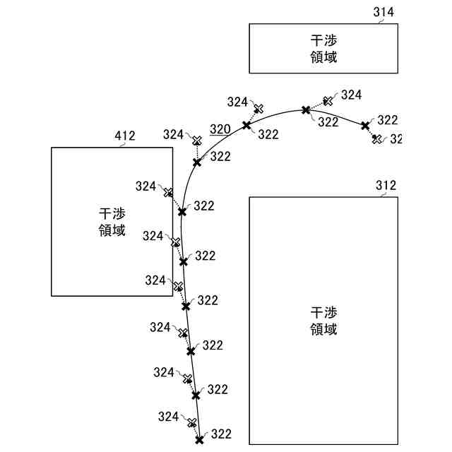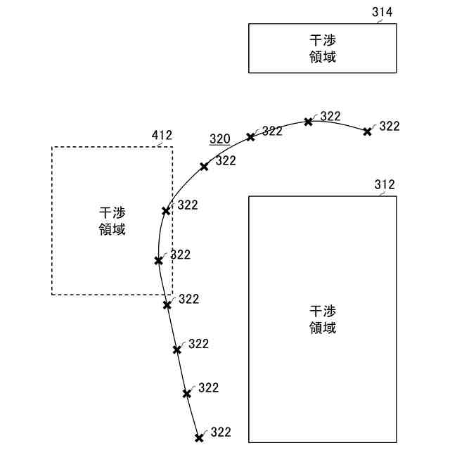 特許文献1には、ロボットと作業環境の幾何学的形状およびそれらの配置を記述した計算機上の幾何モデル手段と、モデル同士の干渉を検査する計算機上の干渉検査手段を利用し、ロボットのスタートおよびゴール配置が与えられたとき、ロボットと作業環境内の障害物とが干渉しないロボットの動作経路を計画する方法が記載されている。