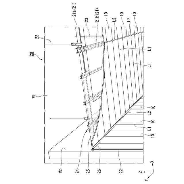 (4)本発明の第4態様に係る食品工場の内装構造は、第2態様において、前記天井面は、水平面に対して傾斜している。