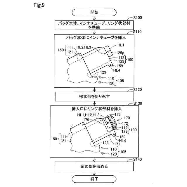 バッグ本体に対するインナチューブの配置を説明する図である。