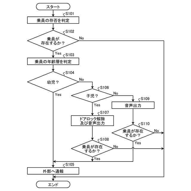 幼児を含む前記年齢層の場合の前記救助方法は、前記車両の外部へ通報することを含み、