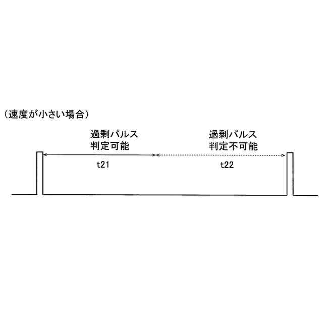 上記目的を達成するために、この発明の第1の局面による速度検出装置は、被検出物の速度に応じて発信されるパルスの周期に基づいて被検出物の速度を算出する制御部を備え、制御部は、今回のパルスの周期が、前回のパルスの周期の1より大きい所定の倍率以上である場合、パルスが欠落していると判定し、前回のパルスの周期に基づいて、被検出物の速度を算出し、前回のパルスの周期と今回のパルスの周期とに基づく加速度が、所定の加速度閾値以上である場合、パルスが過剰に入力されていると判定し、今回のパルスを無視する。