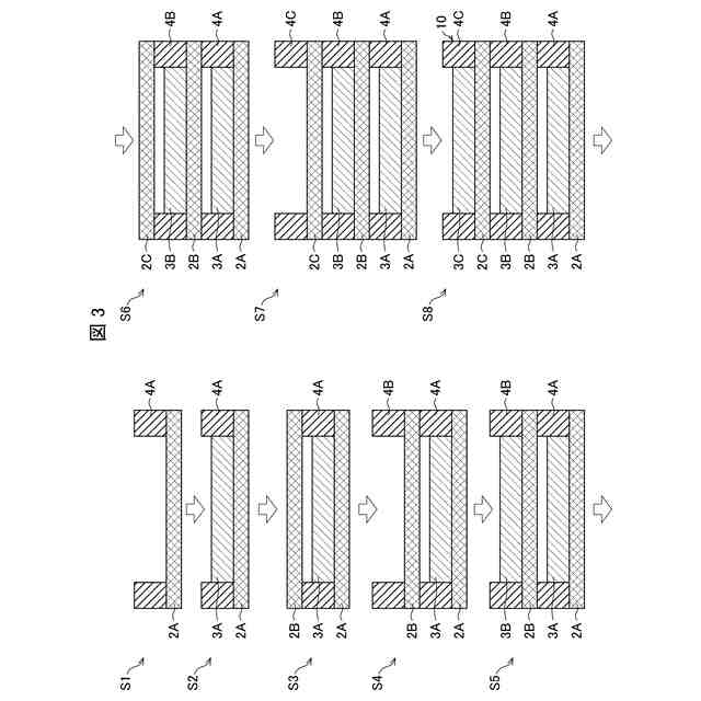 上記積層型電池の製造方法の一例を説明するための模式図である。