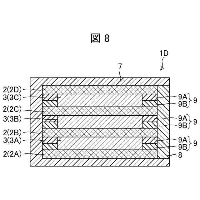また、積層数が多い場合、電極体の厚さの合計と絶縁部材の厚さの合計との差が大きくなり、絶縁部材と集電体とが接触できず、隣接する集電体を絶縁部材により固定できなくなる虞があるとともに、真空封止したときの圧力が電極体の端部に印加され電極体が損傷する虞がある。