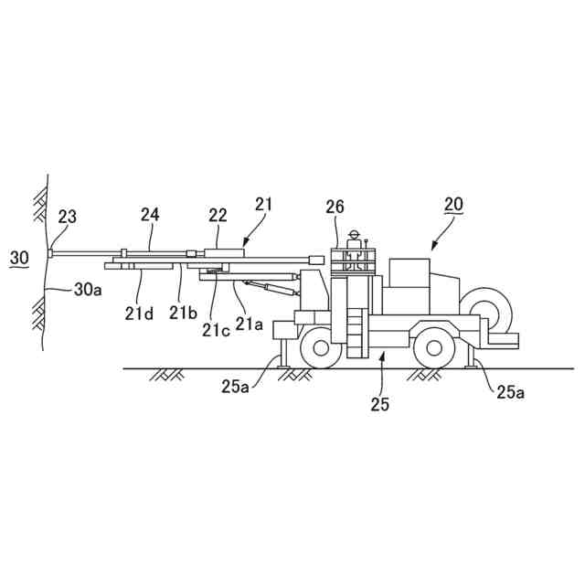 山岳トンネル工法においては、岩盤等による切羽面の地盤を、爆薬を用いた発破によって崩落させながら掘削する工法が採用される場合がある。岩盤等による切羽面の地盤を、爆薬を用いた発破によって崩落させるには、切羽面における複数の所定の位置に発破孔を穿孔形成して、形成した発破孔に爆薬を装填した後に、雷管によって装填した爆薬を起爆させることになるが、このための発破孔を穿孔形成するための重機として、切羽穿孔機を搭載した例えばドリルジャンボなどの公知の穿孔用重機が用いられる(例えば、特許文献1参照)。