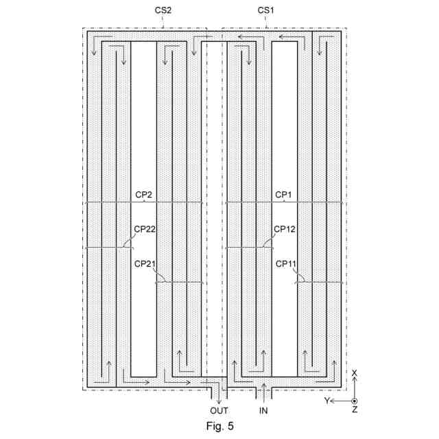 ところで、発明者らは、並設された複数のセルスタックのそれぞれに長手方向に延びた冷却配管を設けて冷却するバッテリを開発している。発明者らは、このようなバッテリにおいて、単純に全ての冷却配管に対して冷媒を一端側から他端側に並列に流すと、冷媒の圧力損失が大きくなり、セルスタックを均一に冷却できないという問題を見出した。