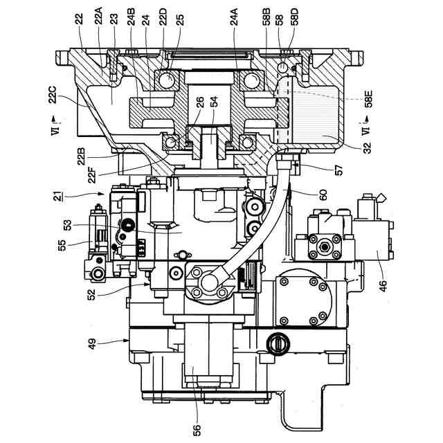【解決手段】 ギヤケーシング22のギヤ室23には、内部通路58の少なくとも一部が潤滑油32に浸漬した状態で油管路57が設けられている。この油管路57には、ファンポンプ52から吐出された作動油(圧油)が導かれるように構成されている。従って、オイルクーラ13で冷却された作動油を利用することで、冷却ファン14による冷却風に頼ることなく、ギヤ室23の潤滑油32の温度上昇を抑制することができる。