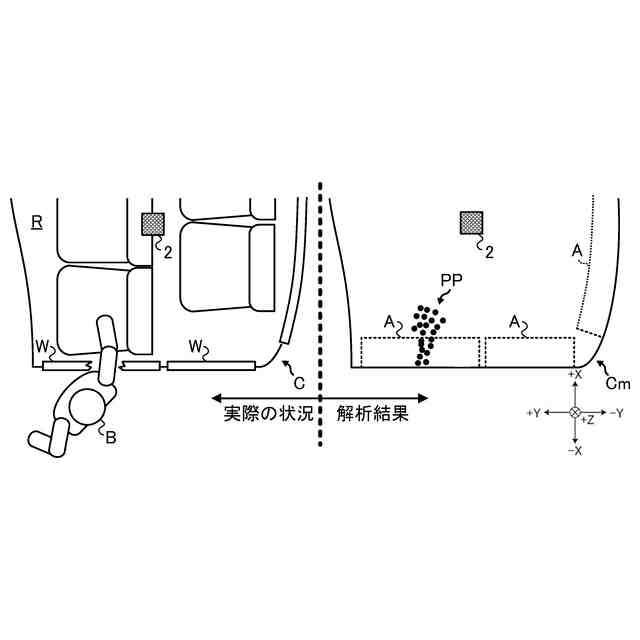 前記点群が、前記車室の内外に連通する出入口を起点として前記車室の内奥へと向かう挙動を示している場合、前記車室内への前記物体の進入が生じていると判定する、
