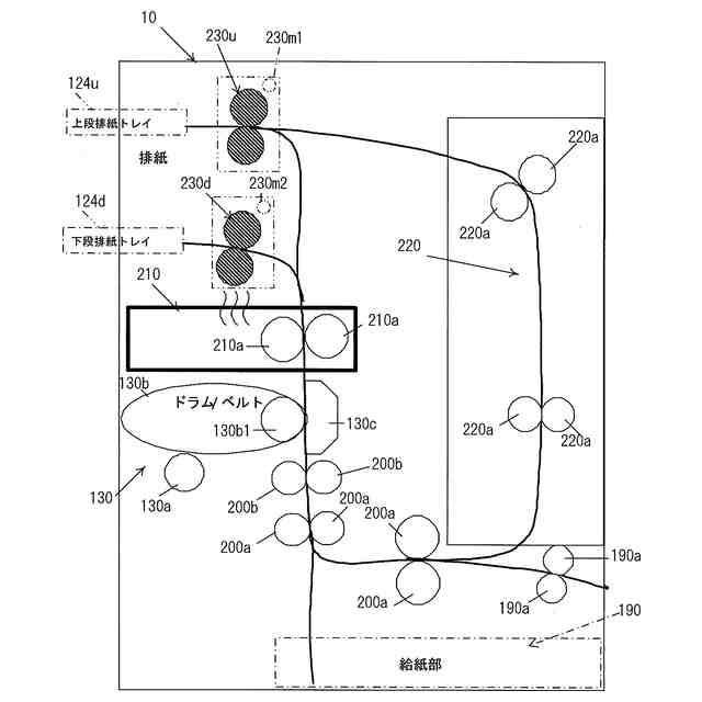 【解決手段】電子写真方式で記録用紙に形成されたトナー画像に熱を加えて定着させる定着部(210)と、定着部の周辺に設置された、記録用紙搬送用のステッピングモータ(230m1)、(230m2)と、前記記録用紙の種類に応じて、前記ステッピングモータの電流減衰設定を制御する制御部(100)とを備えたことを特徴とする画像形成装置。