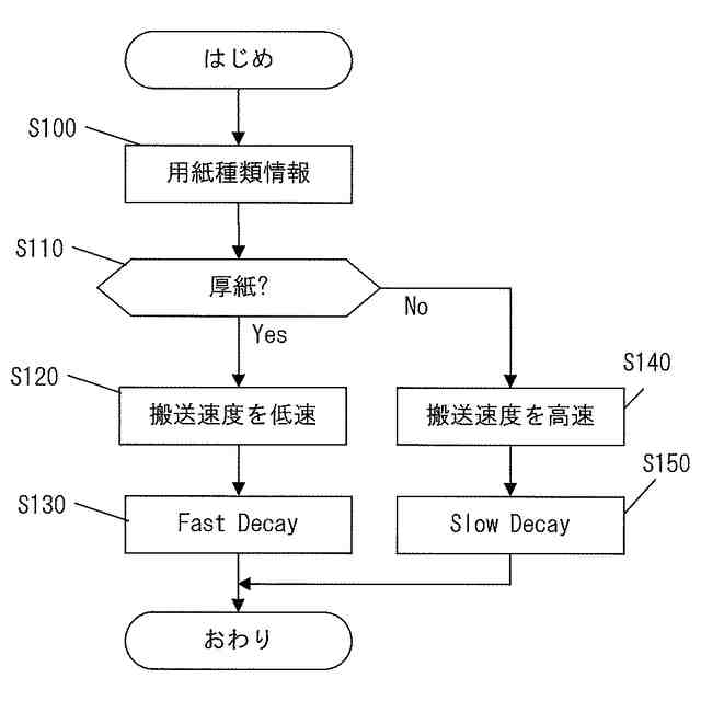 また、本開示は、電子写真方式で記録用紙に形成されたトナー画像に熱を加えて定着させる定着工程と、定着部の周辺に設置された、記録用紙搬送用のステッピングモータを駆動する工程と、前記記録用紙の種類に応じて、前記ステッピングモータの電流減衰設定を制御する制御工程と、を含むことを特徴とする画像形成装置の制御方法である。
