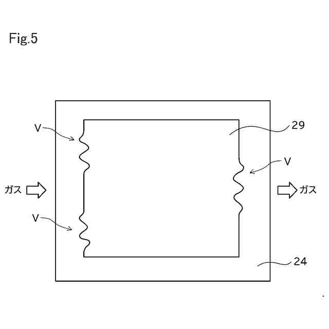 (4)上記(1)から(3)までのいずれか一項に記載の固体酸化物形電解セルにおいて、前記凹凸部が、酸素を含むガスの流れに対し、少なくとも上流側の1辺に存在してもよい。この形態の固体酸化物形電解セルによれば、空気極の周縁へのクラックの発生を効率的に抑制することができる。
