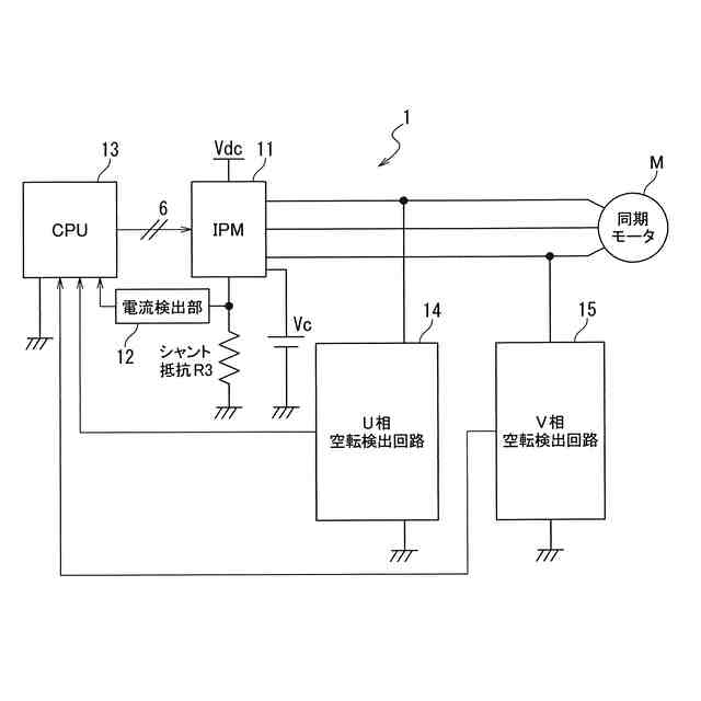 上記特許文献1に開示される位相検出部は、インバータ回路から出力される誘起電圧を分圧する分圧回路と、分圧回路の分圧出力を受け、位相検出信号としてH(ハイ)レベルの信号またはL(ロー)レベルの信号をCPUに出力するコンパレータとにより構成される。このような構成により、上記位相検出信号の信号レベルの変化ごとに、上記電動機の空転中の周波数が演算される。
