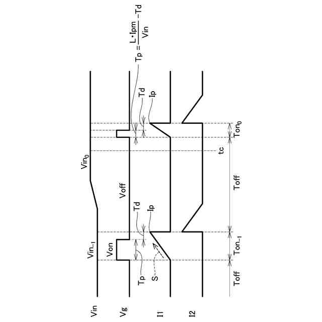 、前記一次電流のピーク値の目標値をIpm、前記ゲートオン電位の印加停止から前記一次電流の低下開始までの遅延時間の設定値をTd、前記パルス幅をTpとしたときに、前記ゲート制御回路が、Tp=(Vin
