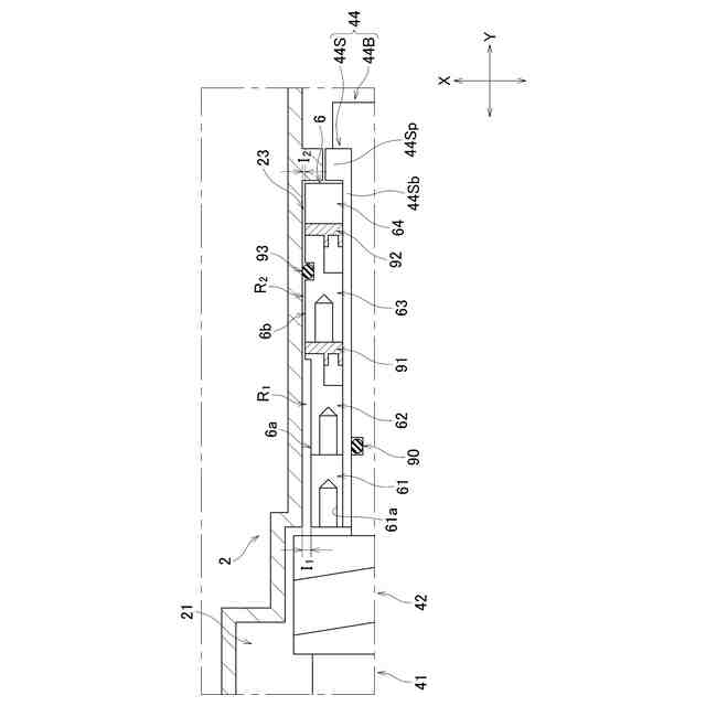第2実施形態の第1軸収容室の一部断面図である。