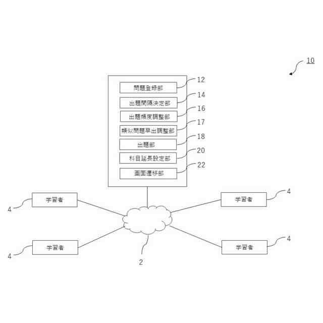 従来、学習者は紙媒体を用いて学習していたが、デジタル技術の発展により、学習のためのソフトウェア等が開発されている。本発明に関連する技術として、例えば、特許文献1には、学習者が知識を習得するための複数の問題及び該複数の問題に夫々対応する解答が登録された問題登録部と、複数の問題の各問題の出題日時を決定する際に、学習者の学習効果を高めるように出題間隔を決定する出題間隔決定部と、学習者にとって学習の必要性が低い問題の出題頻度を下げるように、必要性が低い問題の出題間隔に所定の倍率を乗じる出題頻度調整部と、出題間隔決定部により決定された出題間隔及び出題頻度調整部による調整後の出題間隔に基づいて、学習者に前記各問題を出題する出題部と、を備え、複数の問題は、複数の科目に分類されており、出題頻度調整部は、所定の倍率を科目毎に設定可能とすることを特徴とする学習支援システムが開示されている。