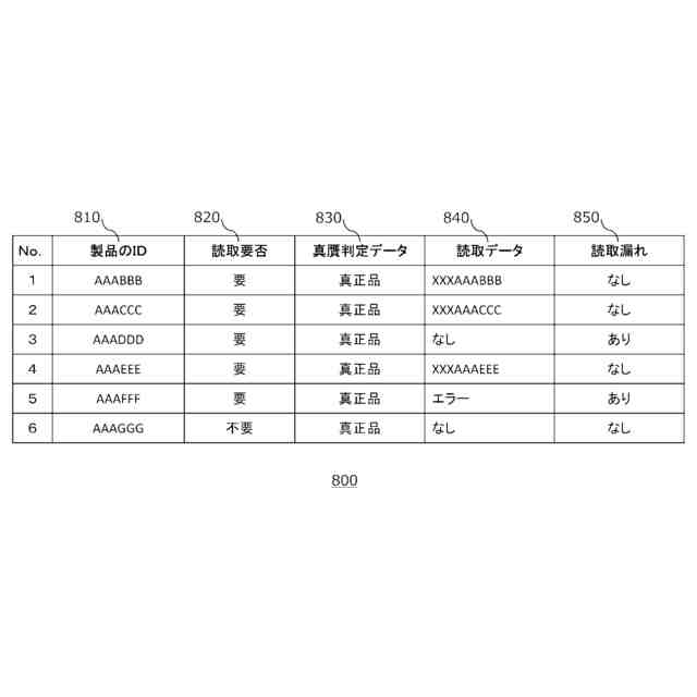 読取漏れ情報生成部は、RFIDタグの読み取りが必要な製品のうち、真贋判定データに関連付けられた読取データが存在しないか、又は、読取データが正常に取得されなかった製品に対し、読取漏れ情報を生成してよい。