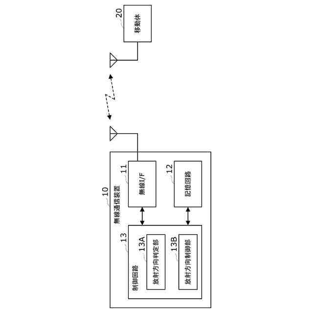 この無線通信装置10は、無線システムで用いられて、無線信号を送受信することにより移動体20と無線通信を行う、基地局や親局などの一般的な無線通信装置であり、複数のアンテナ素子を用いたビームフォーミングにより送信ビームの放射方向や形状を制御するように構成されている。