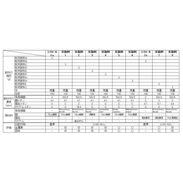 本出願人は、上記課題を鑑みて鋭意検討を行った結果、銅及び/又は亜鉛を含有する飲料に対して、乳酸菌などの有用細菌を配合することにより、銅や亜鉛に由来する金属臭や苦味が軽減されることを見出し、本発明を完成させるに至った。また、有用細菌と共に、銅及び/又は亜鉛を含有させることにより、有用細菌の沈殿が抑制されることを見出し、本発明を完成させるに至った。