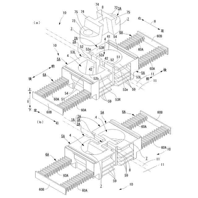 また、床版継手装置1Aは、一方の床版に設けられるC型金物と呼ばれるような継手構成部材としての一方の受部材2Aと、他方の床版に設けられるC型金物と呼ばれるような継手構成部材としての他方の受部材2Aと、これら各受部材2A,2Aを繋ぐH型金物と呼ばれるような繋ぎ部材3Aとを備えて構成される。