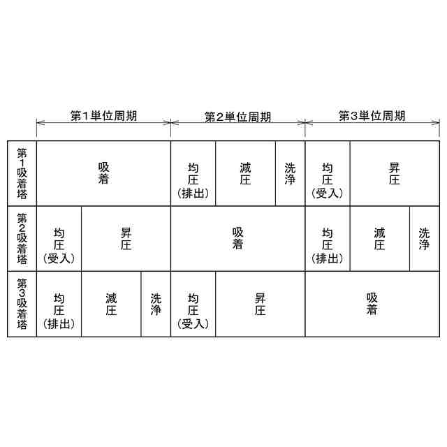水素製造装置は、改質部によって、天然ガスやナフサ等の炭化水素系ガスである原料ガスを水蒸気改質処理により水素成分が多い改質ガスに改質し、圧力変動吸着部によって、水素成分及び水素成分以外の吸着対象成分を含む改質ガスから吸着対象成分を吸着剤に吸着することにより、水素濃度の高い製品ガスを製造するものである。