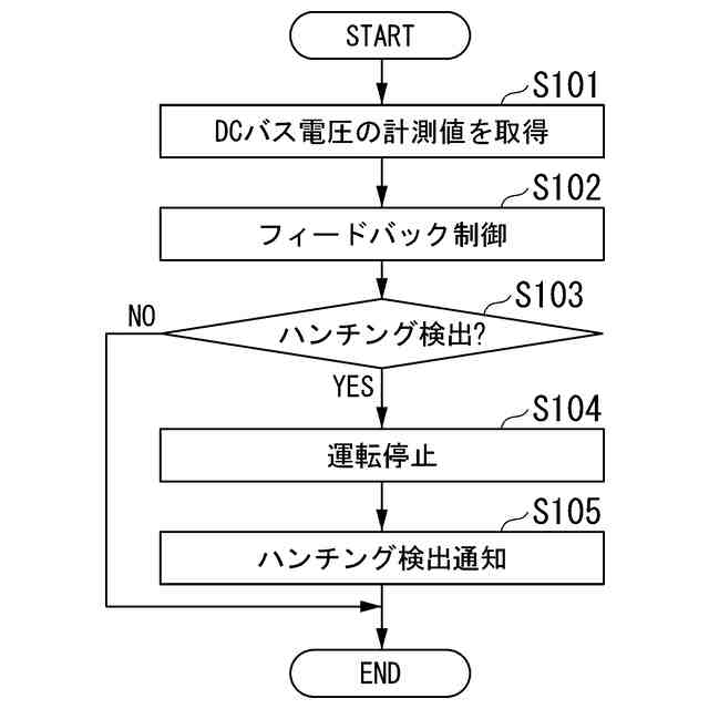 前記電力変換器は、ハンチングの発生を検出した場合に、電力変換器の動作を停止する停止処理部をさらに有する、