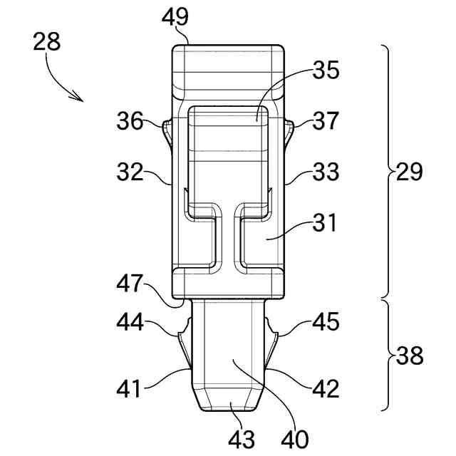 前記非一体部材係合部が前記被挿入穴に挿入された状態において、前記非一体部材係合部のうち、前記被挿入穴への挿入方向と反対側の後端と、前記被挿入穴の開口端部とが揃う、