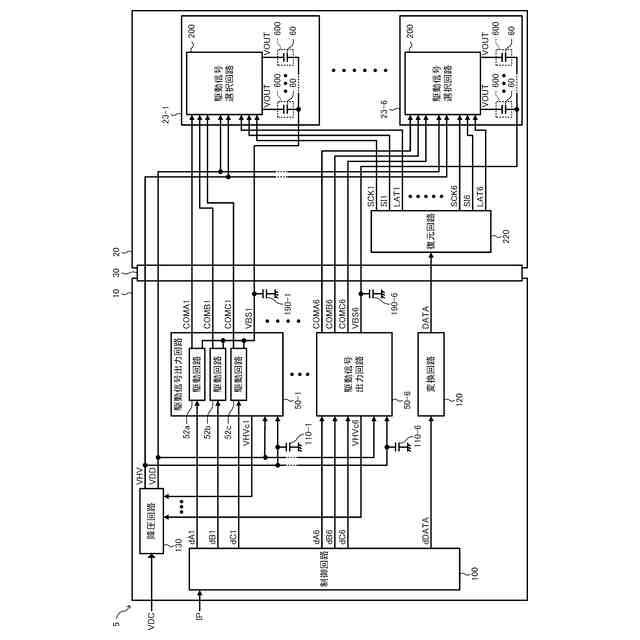 ヘッド基板に形成される駆動信号COMB1~COMB6を伝搬する配線パターンの一例を示す図である。