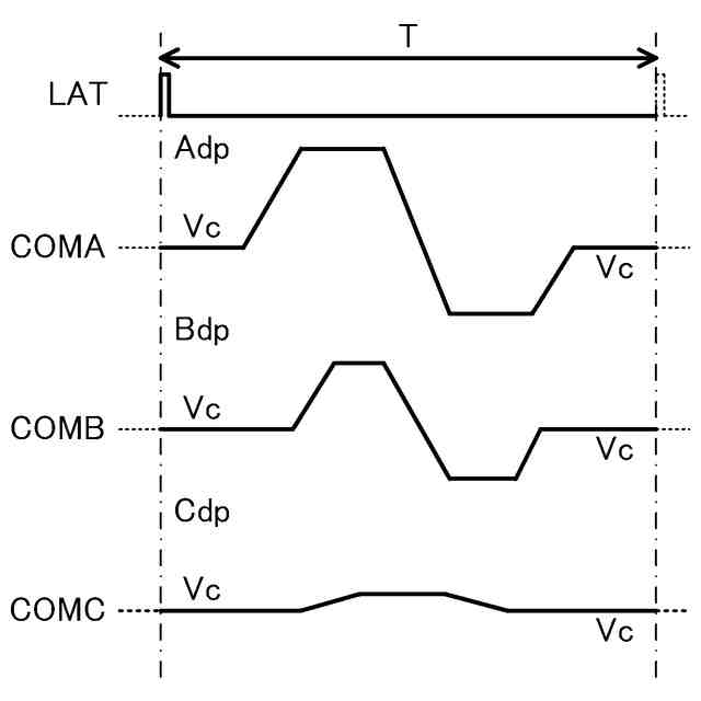 駆動信号COMA,COMB,COMCの信号波形の一例を示す図である。