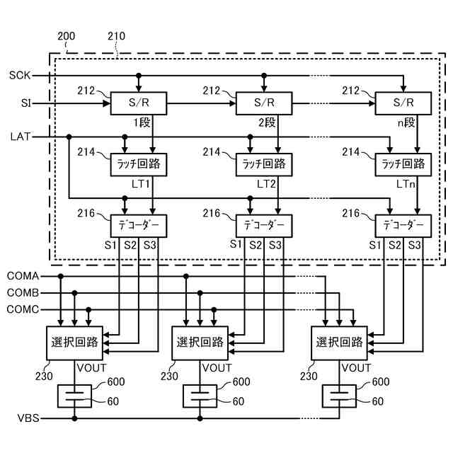 吐出部の1個分に対応する選択回路の構成の一例を示す図である。
