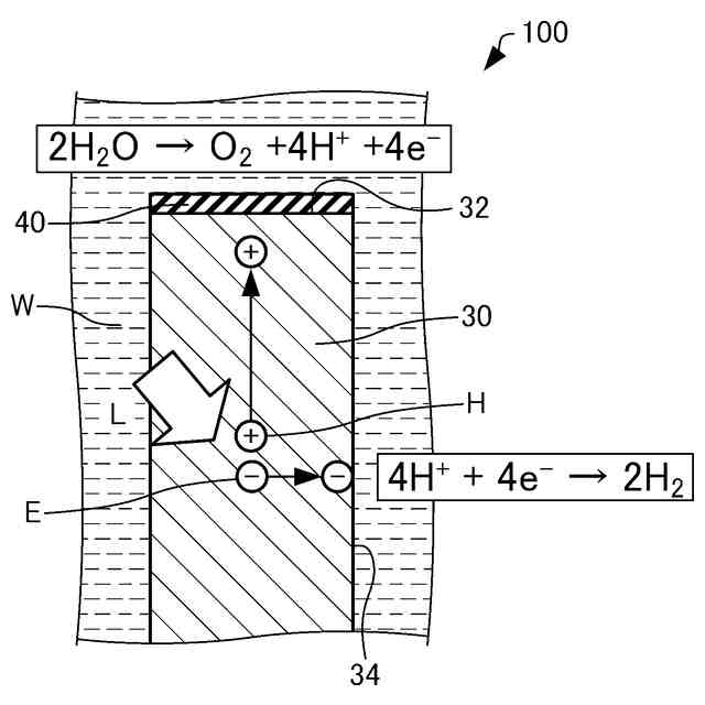 で構成されたシェルと、を備えたナノ構造体からなる可視光応答型光触媒が記載されている。可視光応答型光触媒では、バンドギャップに対応するエネルギー以上のエネルギーを有する光が吸収されると、正孔と電子とが生成され、正孔は、水の酸化反応に用いられて酸素を発生させ、電子は、水の還元反応に用いられて水素を発生させる。
