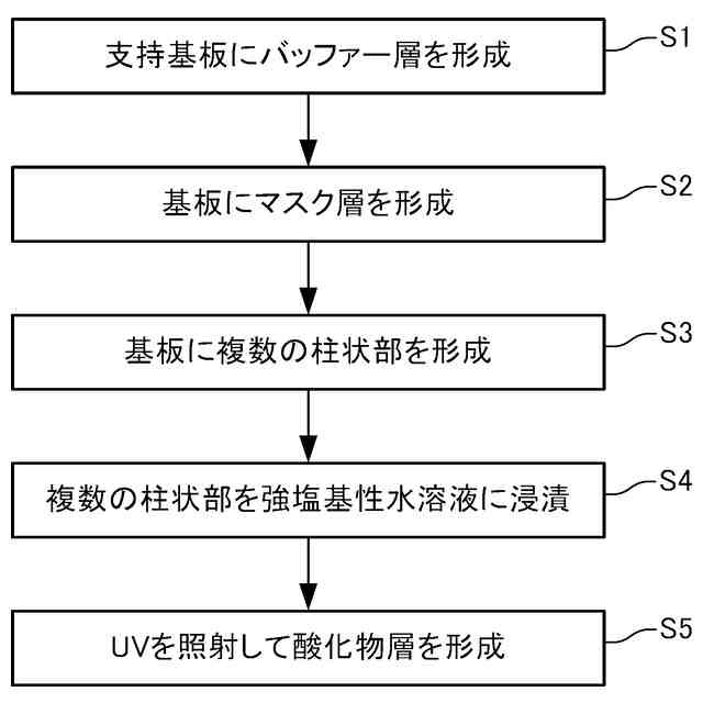 前記複数の柱状部を、強塩基性水溶液に浸漬する工程と、