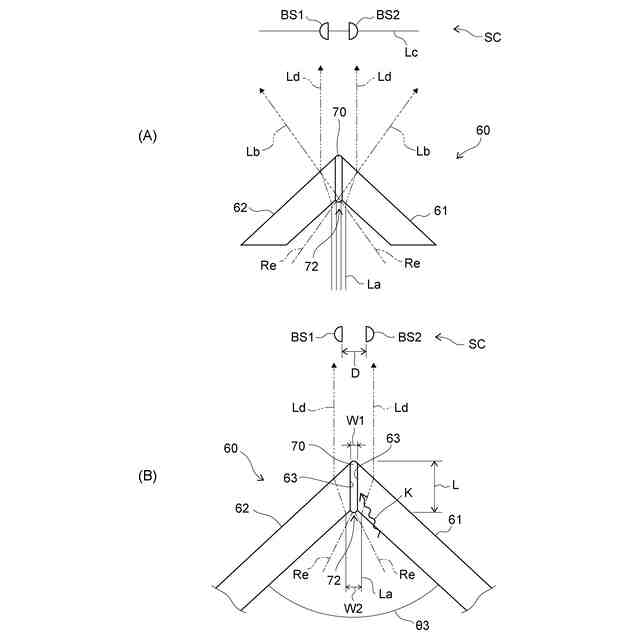 また好ましくは、前記レーザ出射部は、前記透過窓に向けて出射される出射点を有し、前記複数の透過窓どうしの前記接着剤で接合された接合面は、前記レーザ出射部の回転中心軸と前記出射点とを結ぶ直線に沿っていることを特徴とする。