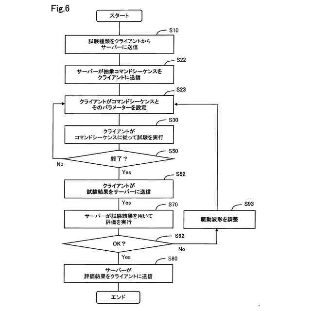 (1)液体吐出装置320で試験を実行するためのコマンドシーケンスをクライアント300に送信するサービス。