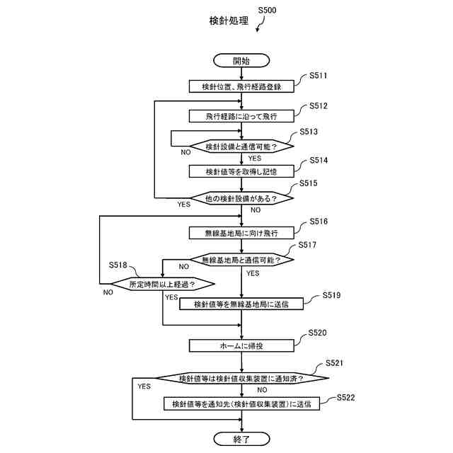 【解決手段】プロセッサ及び記憶装置を有する情報処理装置、地上に存在する一つ以上の検針設備と無線通信する第1通信装置、及び検針値等の通知先と通信可能な無線基地局と無線通信する第2通信装置を備えた無人航空機を、検針設備と通信可能な位置まで飛行させる。第1通信装置は、上記位置において検針設備と無線通信することにより検針値等を取得する。第2通信装置は、無線基地局と無線通信することにより検針値等を通知先に通知する。検針値等を取得した後、無線基地局と無線通信することができない場合、無人航空機は、無線基地局と通信可能な位置まで飛行し、第2通信装置が、上記位置において無線基地局と無線通信することにより検針値等を通知先に通知する。